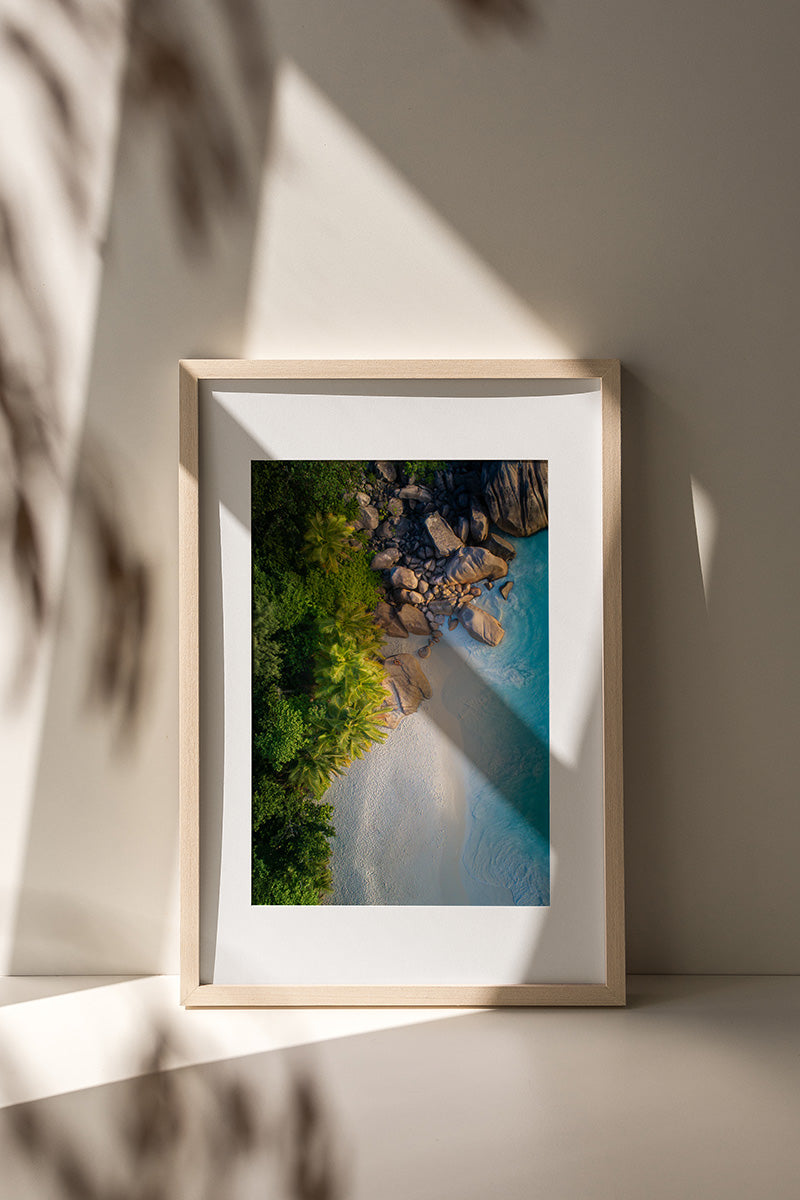 This print is like a window to paradise. The greens, soft sands, and turquoise waters feel alive, pulling you right into the scene. Truly stunning art that looks even better on the wall.